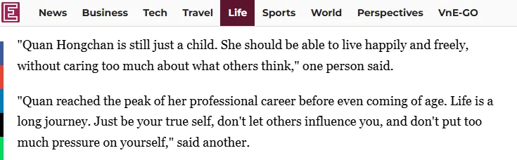 越南权威新闻网站VnExpress也援引网友评论发声: